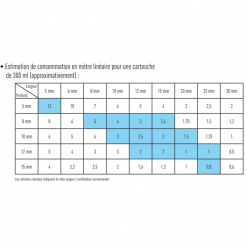 - La cartouche : Produit prêt à l’emploi. Il s’applique avec un pistolet à mastic manuel ou pneumatique.