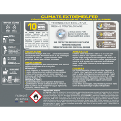 Cette peinture Fer Climats Extrêmes® a été spécialement conçue pour peindre des pièces en métal soumises à des conditions climatiques très rudes.